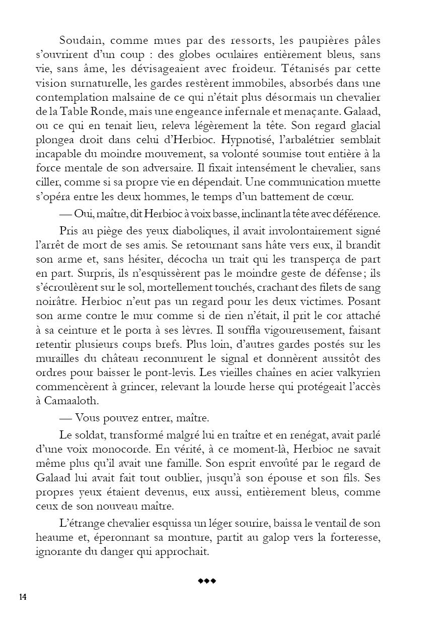 » Le royaume de Logres court un grave danger. Le roi Arthur est devenu trop vieux. Ses chevaliers ont disparu. Merlin a perdu ses pouvoirs et Galaad a soif de vengeance ! Kadfael, le jeune protégé de Merlin et fils de Perceval le Gallois, va tenter l’impossible pour trouver le Graal, protéger Excalibur et rendre au royaume sa splendeur perdue. Aidé de son vieux maître, d’un nain bougon et d’Adélice, une fée aussi courageuse que troublante, il sera confronté à des situations plus périlleuses les unes que les autres. Hommes, fées et nains devront s’allier pour éviter la destruction de leur monde. Réussiront-ils à vaincre Vikings, dragons, banshees et trolls à la solde de Galaad, le chevalier félon ? À mi-chemin entre les récits des chevaliers de la Table Ronde, les légendes celtiques et la mythologie scandinave, L’Héritier du roi Arthur plonge le lecteur dans un univers peuplé de héros et de créatures fantastiques, drôles ou terrifiantes ! «