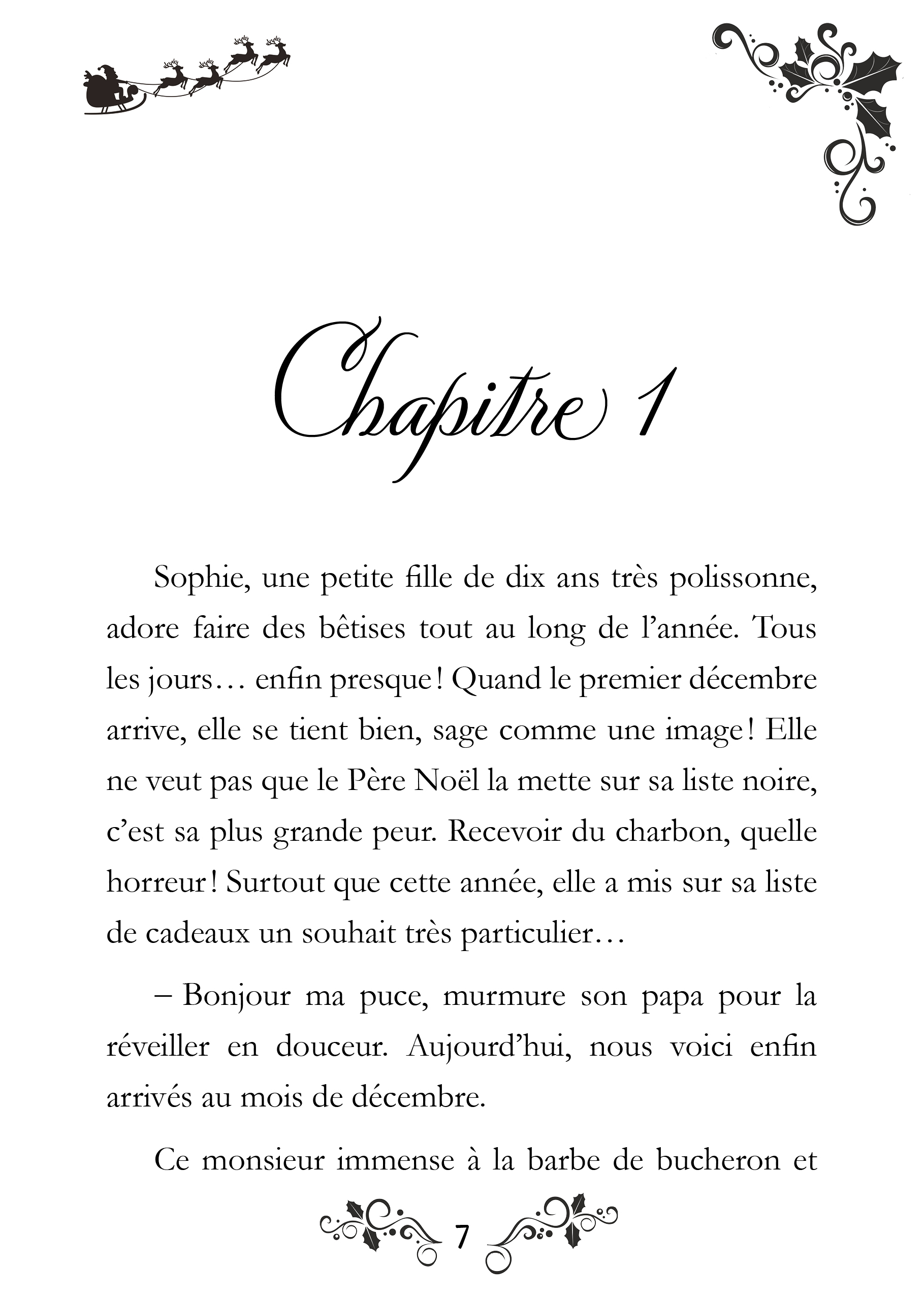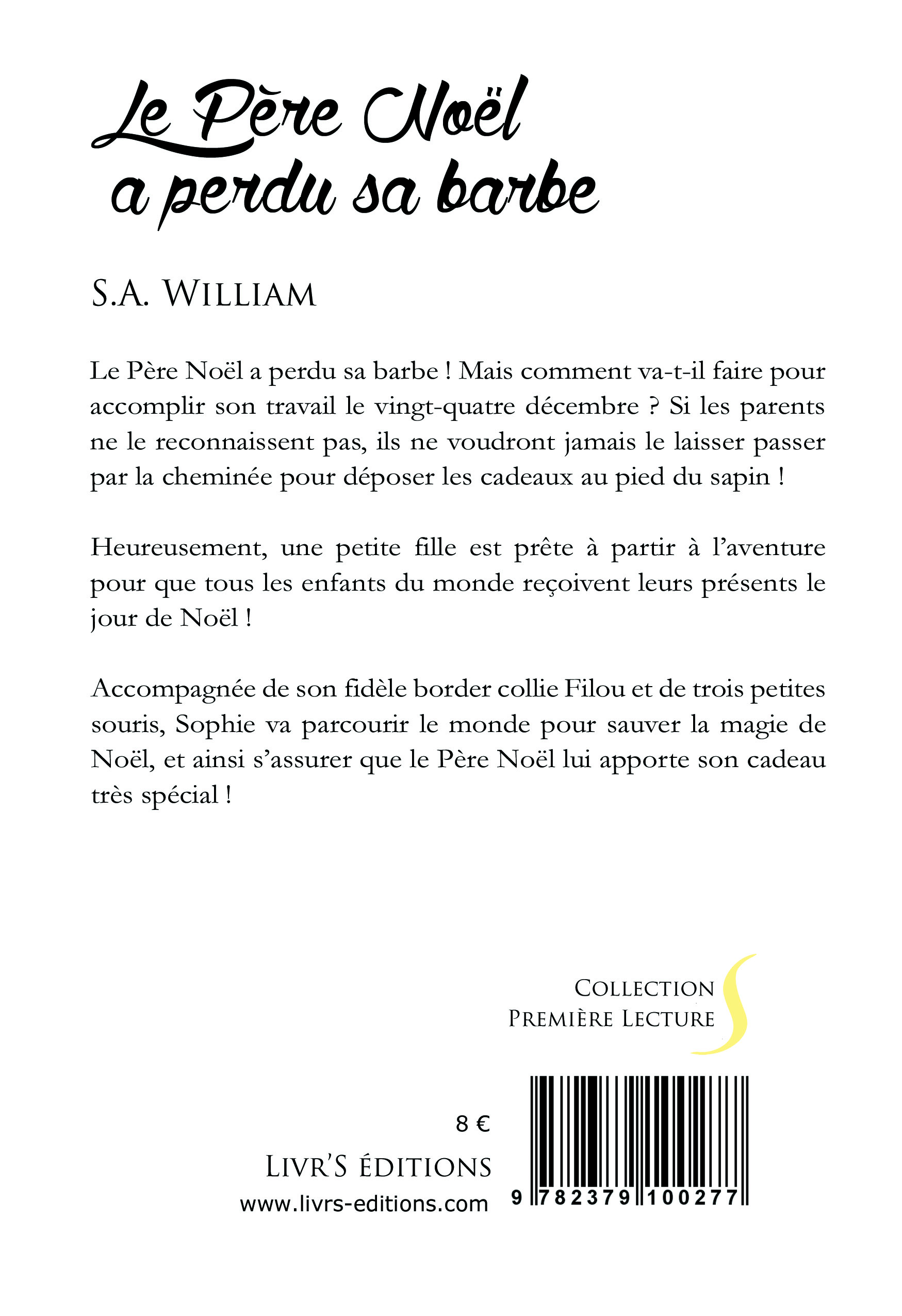 Le Père Noël a perdu sa barbe ! Mais comment va-t-il faire pour accomplir son travail le vingt-quatre décembre ? Si les parents ne le reconnaissent pas, ils ne voudront jamais le laisser passer par la cheminée pour déposer les cadeaux au pied du sapin ! Heureusement, une petite fille est prête à partir à l’aventure pour que tous les enfants du monde reçoivent leurs présents le jour de Noël ! Accompagnée de son fidèle border collie Filou et de trois petites souris, Sophie va parcourir le monde pour sauver la magie de Noël, et ainsi s’assurer que le Père Noël lui apporte son cadeau très spécial !