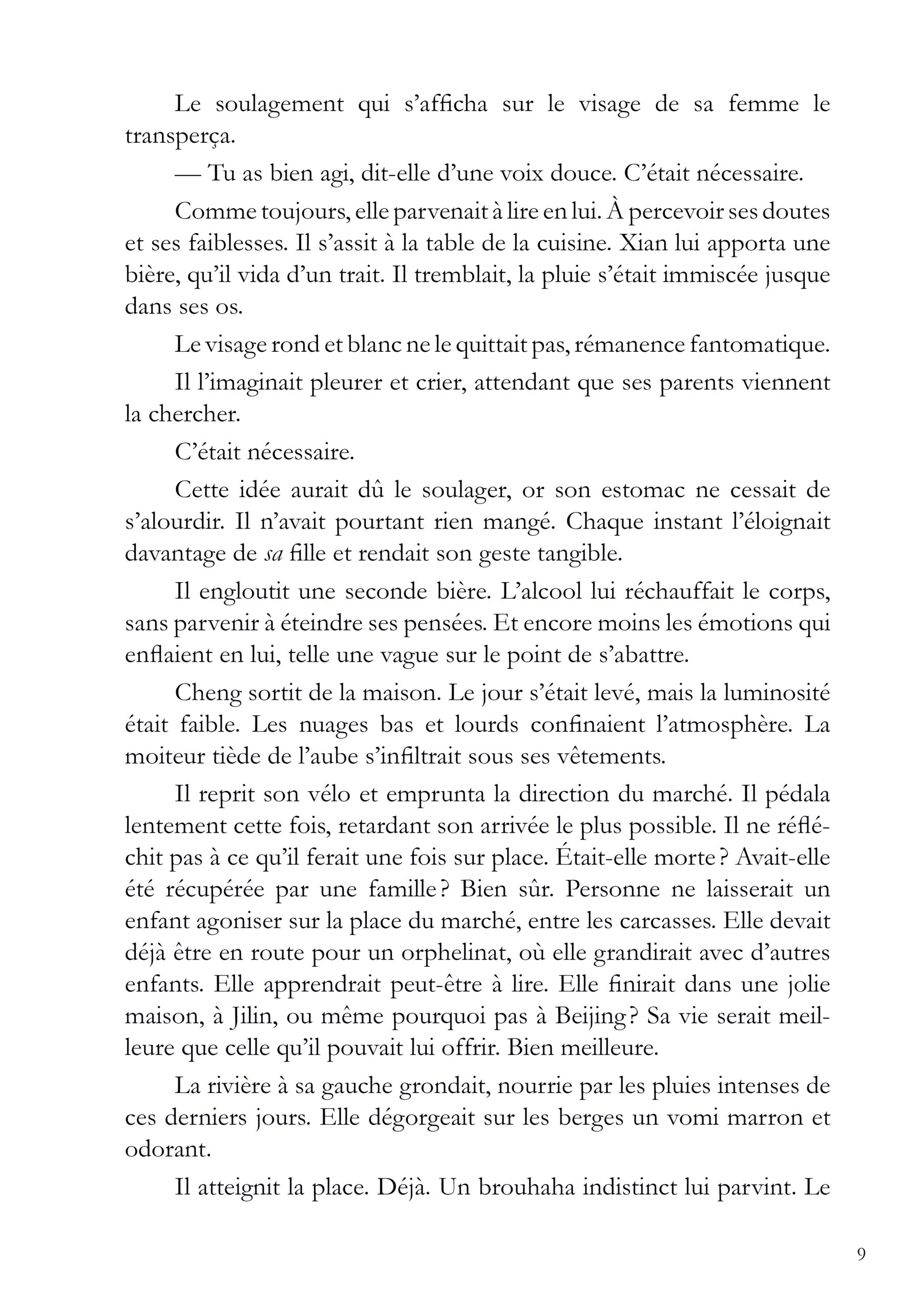 "Un thriller efficace, noir, quelques fois éclairé de lumière crue… Un personnage principal fort, froid, implacable à qui la vie et les gens n’ont jamais rien facilité. Son existence aux fondations traumatiques générées par la politique de l’enfant unique de la Chine et d’une secte sournoise et manipulatrice, vont faire d’elle une être avec un grand gouffre à la place du cœur… Une survivante, un fantôme du passé. Une histoire triste, cruelle et bouleversante parce que bien-sûr cette vie a très bien pu exister; elle n’est pas si exceptionnelle de noirceur… c’est peut-être ça qui est si dur quand on suit le chemin de Zhaodi."